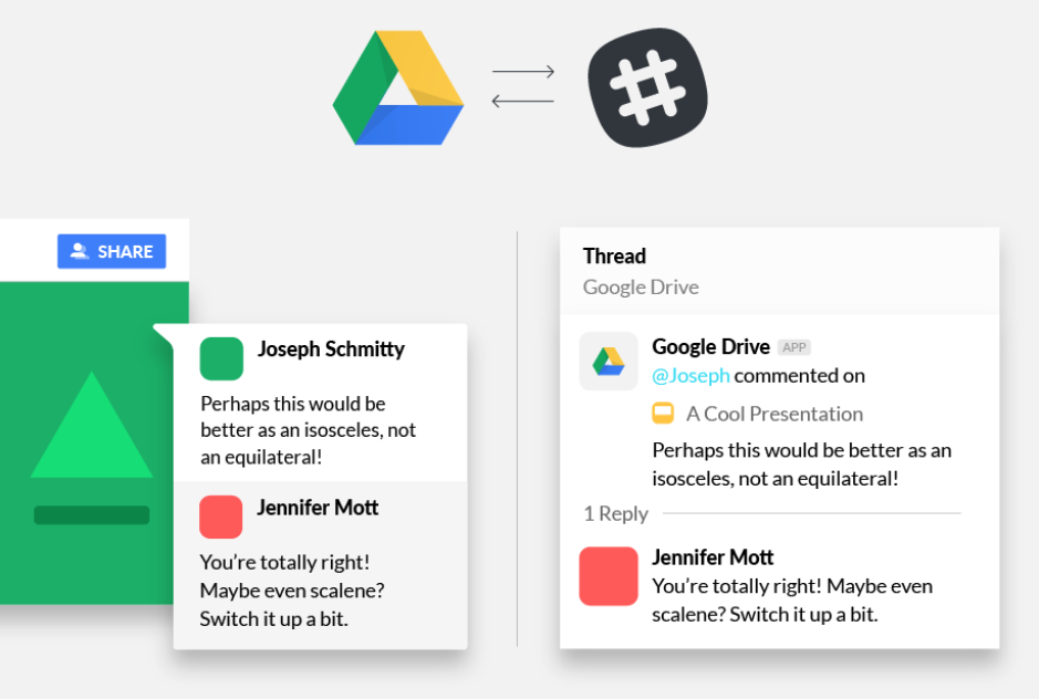 | Google Drive | Collaboration | Collaborative file sharing and notifications in Slack |