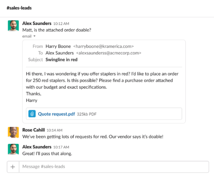 - Intercom chats: When a lead on your site starts a conversation with you, respond instantly from Slack.