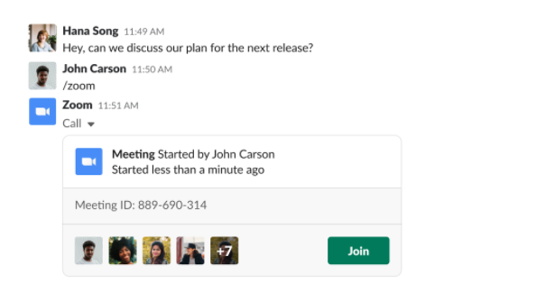 | Zoom | Communication | Start Zoom meetings and make calls in any Slack channel, private group, or direct message |