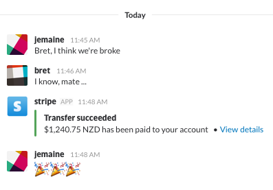 | Stripe | Productivity | Automatically post to Slack when updates occur on charges, subscriptions, transfers, and other Stripe payments |