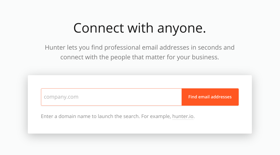 Hunter helps you find the email addresses of prospects with a set of tools for pulling contact details from websites, articles and other online sources. This allows you to identify target companies you want to target with your outreach email campaigns and find the right email addresses of individuals who make the purchase decisions at these companies.