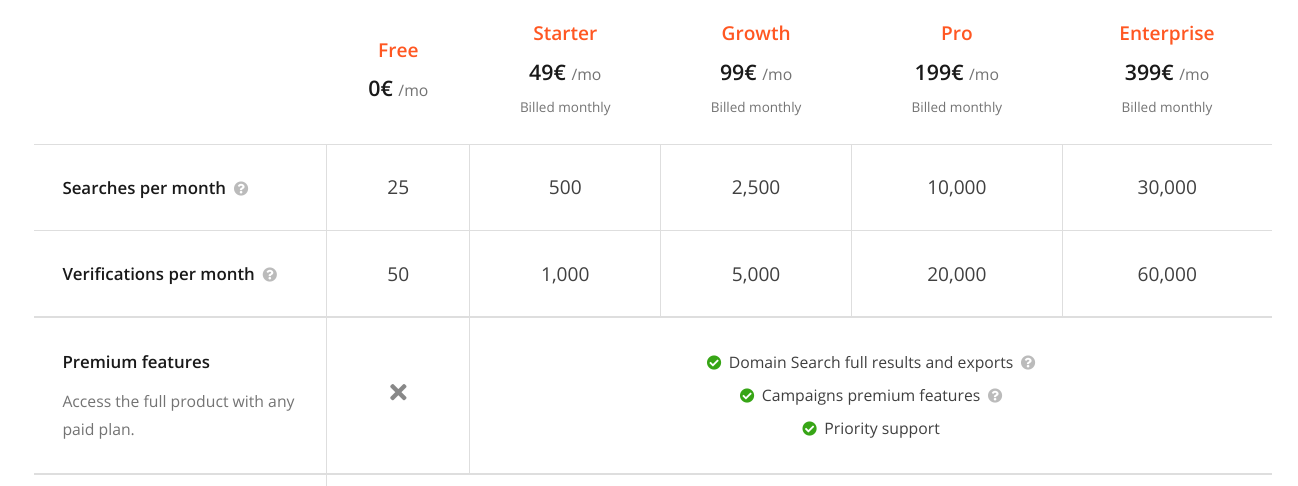 - Email Finder: Find the email addresses of individuals by typing in their full name and the domain.