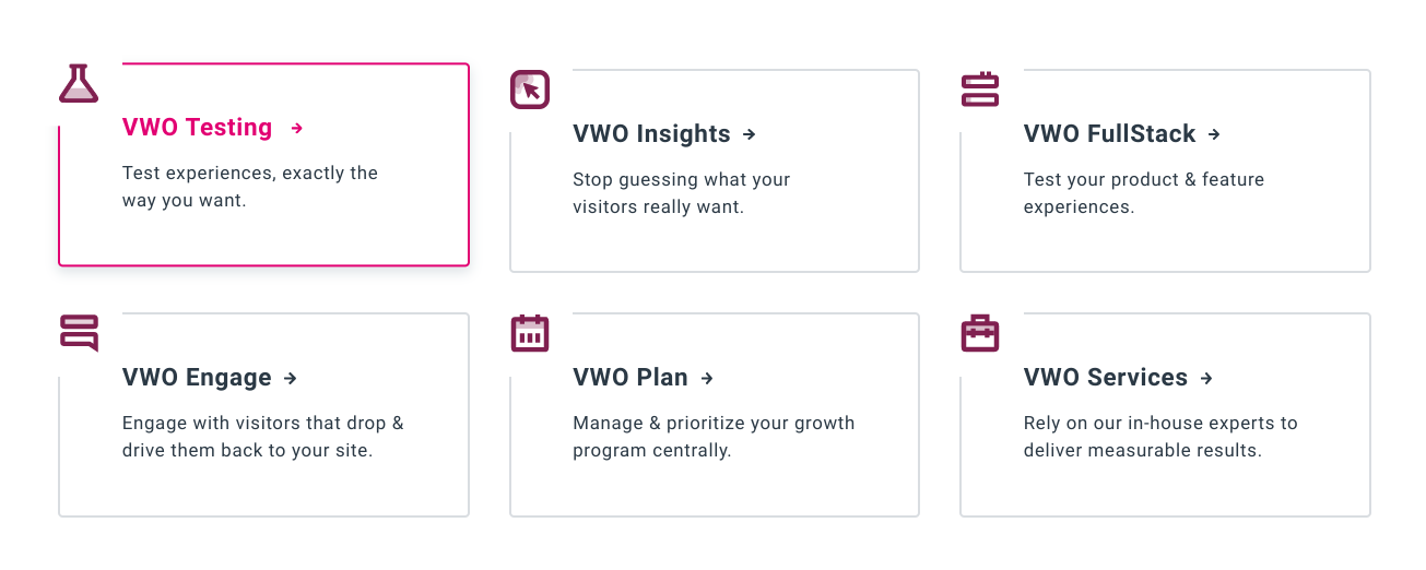 - VWO Fullstack: Server-side testing and mobile app testing for software products.