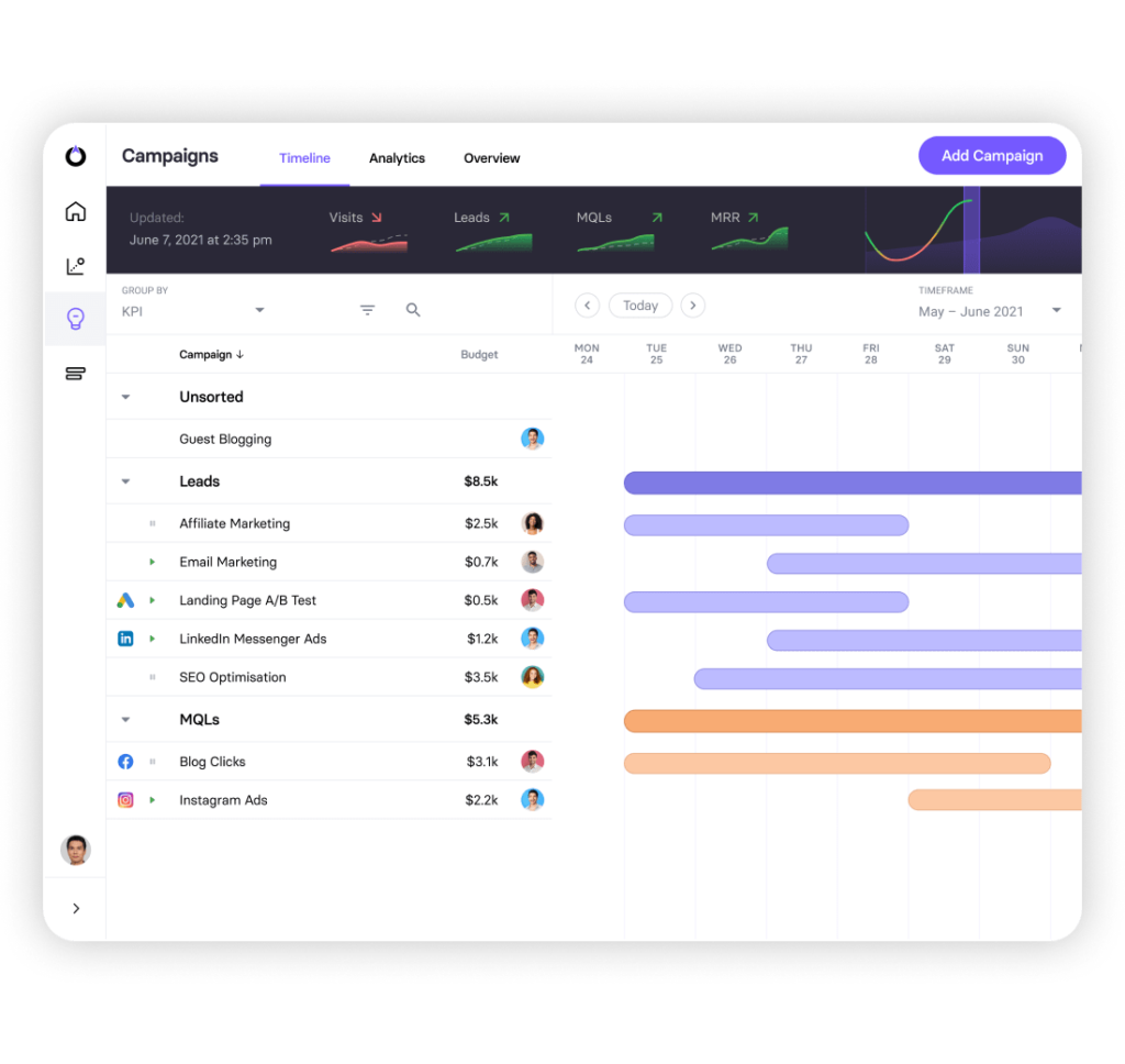 This goal-oriented, data-driven approach to marketing forecasting allows you to set and allocate budgets with confidence, knowing you’re able to optimise campaigns on the fly and readjust spend to invest more in your top-performing campaigns. Instead of running strategies in the dark, you gain the foresight to see what’s coming ahead and identify opportunities/challenges faster. This means you’re ready to respond to developments faster, whether this means optimising campaigns to bring performance back up to par or increasing budgets for profitable campaigns.