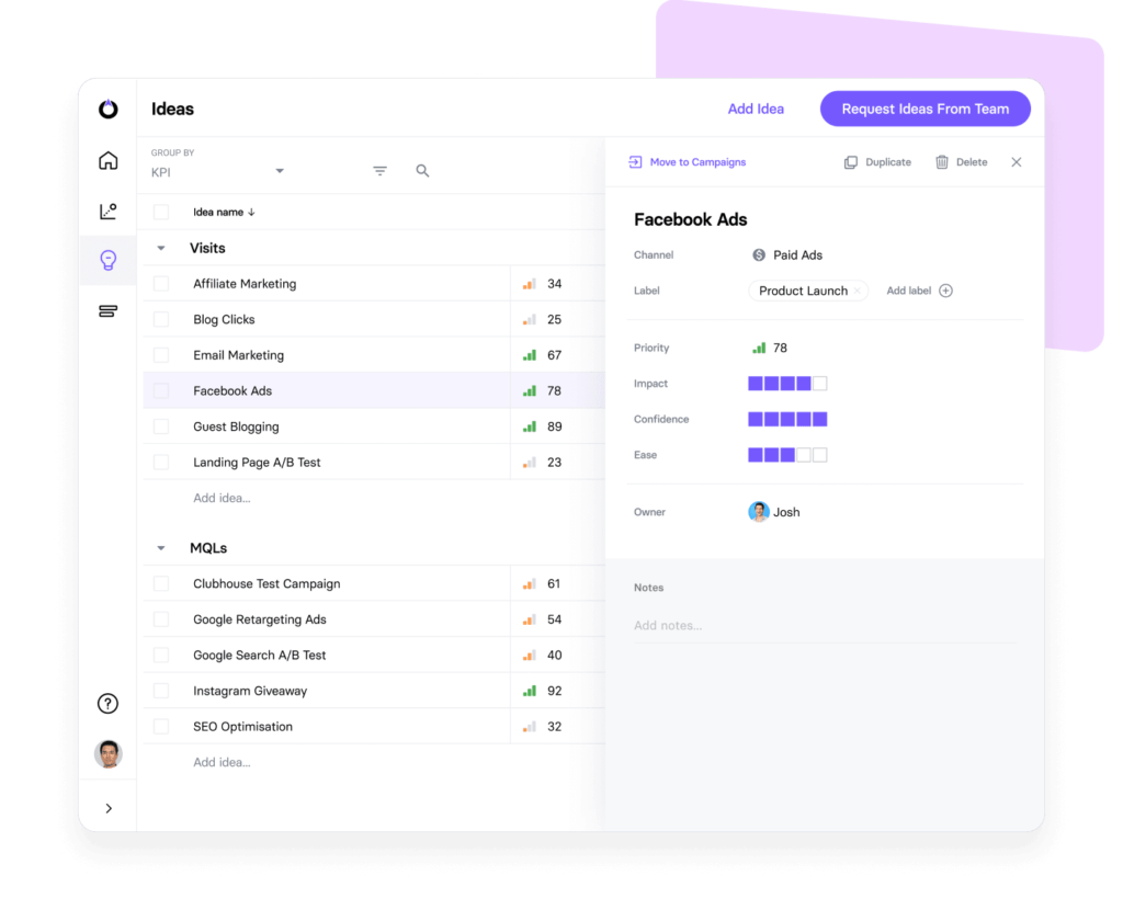 The most ambitious objective we touched on above is increasing the quality of traffic. For these ambitious objectives, marketing forecasting is especially important because you’re coming up with campaign ideas that have a more indirect impact on metrics and KPIs. For example, you’re creating new ad campaigns to generate traffic to your landing pages, new content marketing campaigns to promote your page in organic search and outreach opportunities to generate traffic from relevant third-party sites.