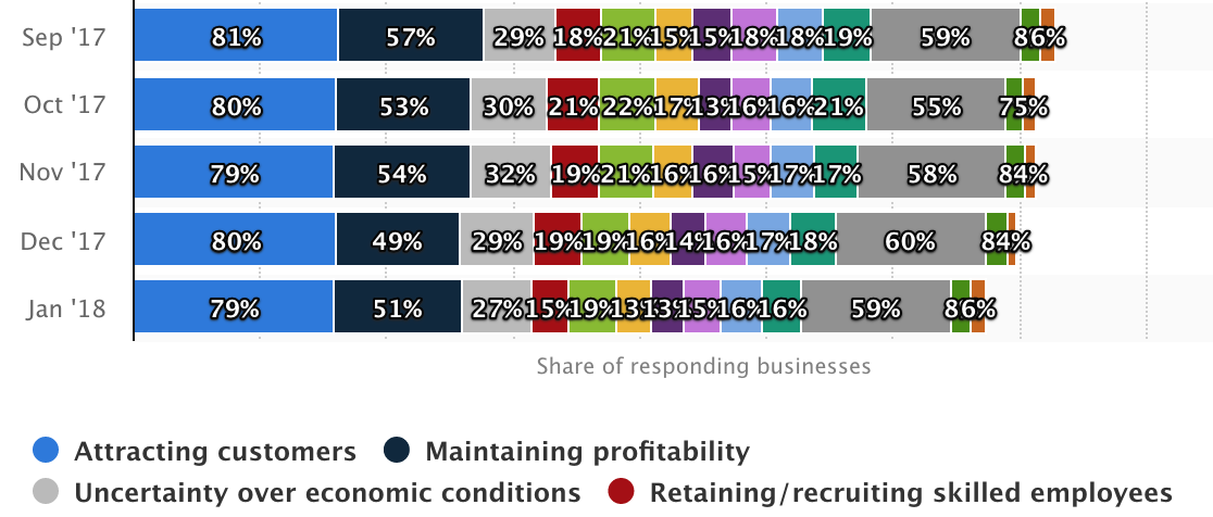 According to data from Statista, the biggest challenge for businesses in the UK is attracting customers, with 80% of business owners citing this as their top concern.