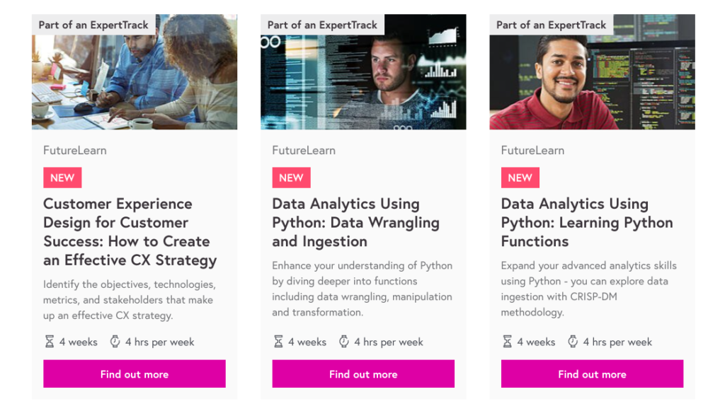 For example, a course provider like Future Learn can target staff with courses promising them to take the next leap in their career or training for the specific tools that will help them get a promotion within their existing company – or a job with one of their rivals.